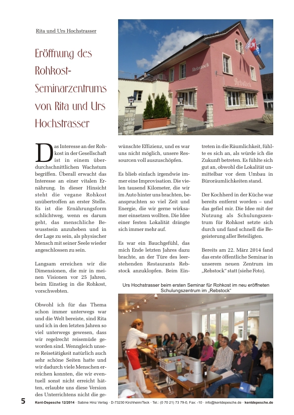 Eröffnung des Rohkost-Seminarzentrums von Rita und Urs Hochstrasser