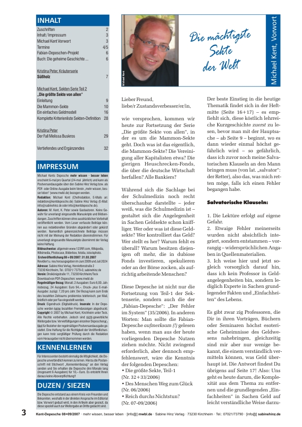 »Nachdem wir uns im ersten Teil der Serie mit der Schul-Medizin-Sekte befassten, kommen wir heute zu einer noch finstereren, obskureren und weitaus geheimnisvolleren Organisation, die man Geld-Sekte, besser noch Geldmissbrauchs-Sekte oder eben „Mammon-Sekte“ nennen könnte. Das Wort „Mammon“ stand ursprünglich und bezeichnenderweise für „unredlich erworbenen Gewinn oder unmoralisch eingesetzten Reichtum“. Als personifizierter Reichtum ist Mammon ein Dämon , der den Menschen zum Geiz verführt. Der Begriff ist aufgrund seiner Erwähnung in der Bibel bekannt (Matthäus 6,24: Niemand kann zweien Herren dienen. Entweder er wird einen hassen und den andern lieben, oder wird einem anhangen und den andern verachten. Ihr könnt nicht Gott dienen und dem Mammon.) Eine Definition, die perfekt zum Ausdruck bringt, worum es in diesem Artikel geht.«