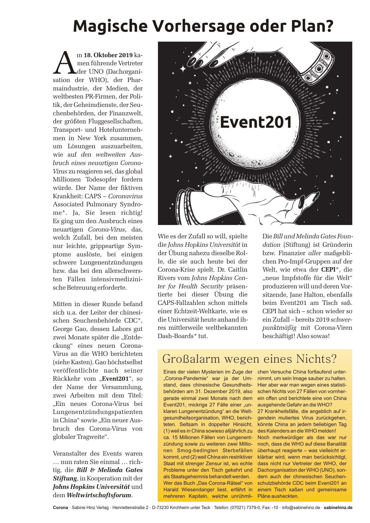 Der Corona-Plan: Macher, Milliarden, Methoden – wie Dollarmilliarden mit Hilfe von Propaganda und Massenmedien Wirklichkeit schaffen. Es lebe das „Neue Normal“! Magische Vorhersage oder Plan: Event 201. Bill Gates, WHO und andere finanzielle Verstrickungen.