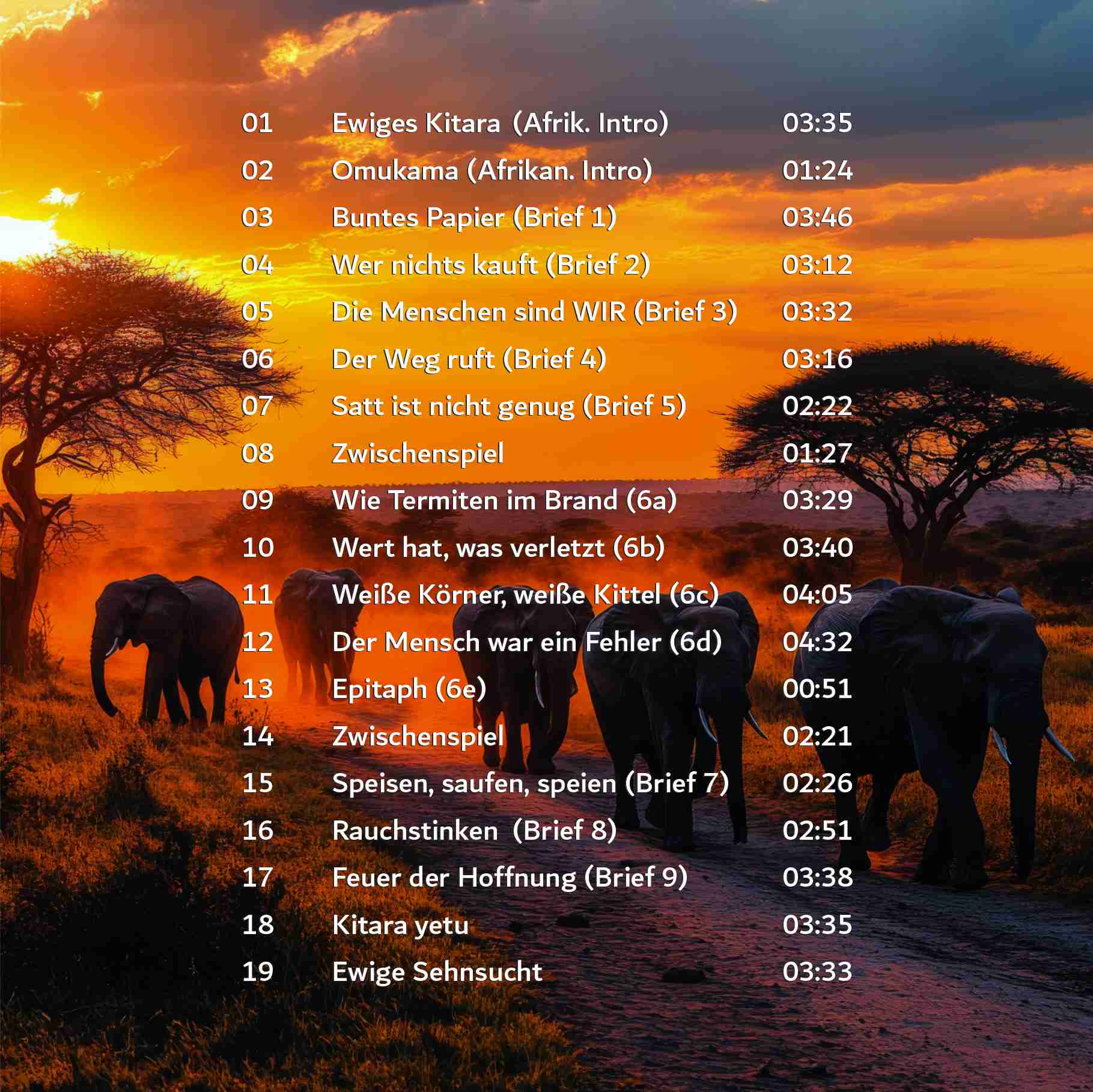 Dieselben gehen tief, nehmen einen mit in eine andere Welt – sowohl in eine afrikanische als auch eine vergangene – und stoßen einen dann mitten hinein in den politischen und profitorientierten Wahnsinn der Gegenwart, werfen Sinnfragen auf – und rufen am Ende aber nicht laut „Hurra“, sondern führen sanft zurück zur Schönheit und Einfachheit des natürlichen Lebens.